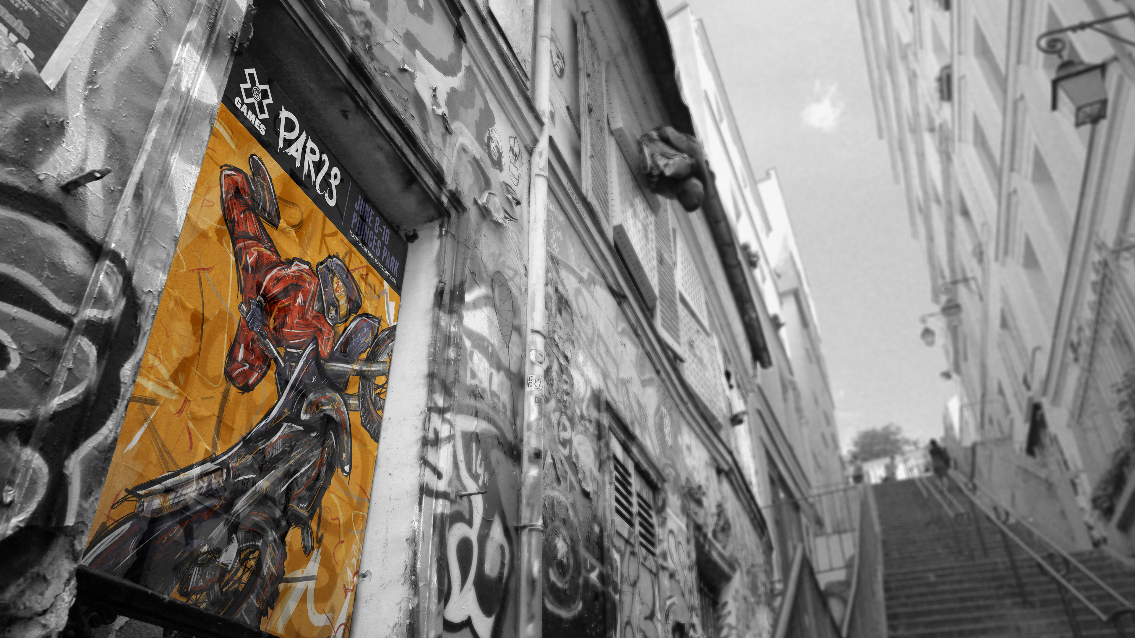 Experience the high-soaring, XGAMES 2028 hosted in Paris, France. Inspired by Paris’ underground street culture and night life, the games’ branding highlights the gritty nature of the city of lights.